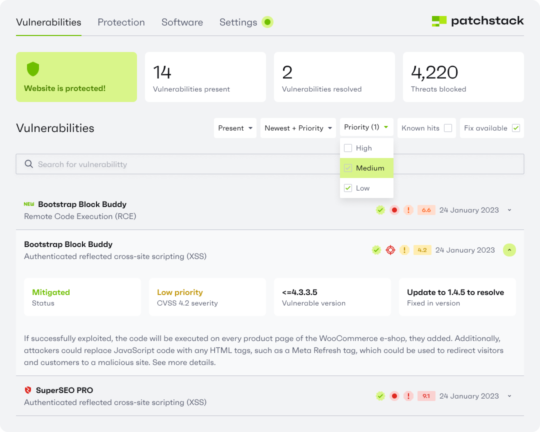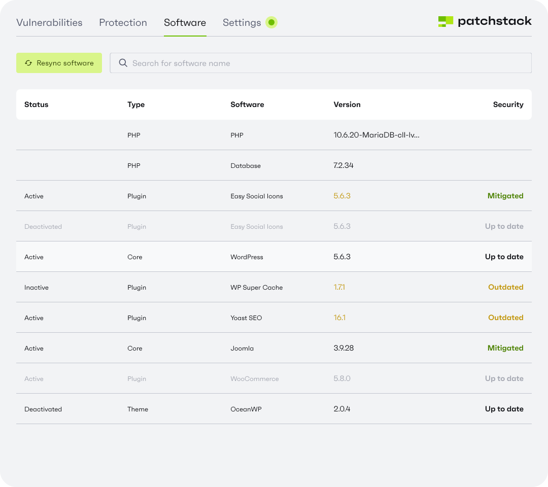 Simply plug it in your own environment and give customers deeper insights into the state of their website’s security while not giving them too much control over how Patchstack is configured on their website.